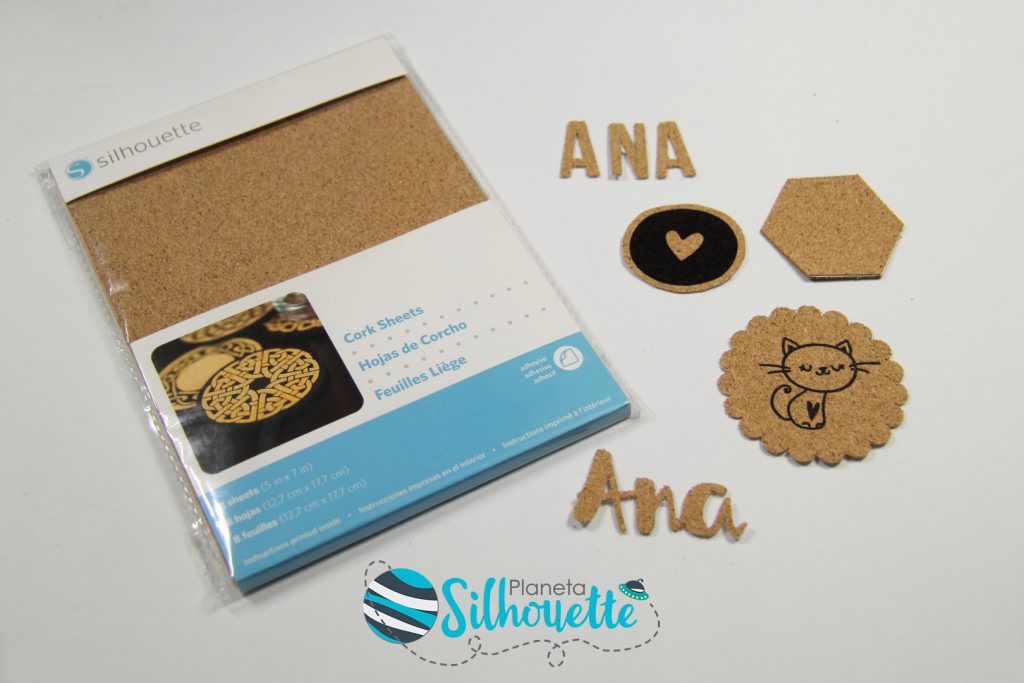 En el caso del corcho, el que encontramos normalmente a la venta, no se corta bien con la Silhouette, así que Silhouette América ha decidido sacar sus propias láminas de corcho para que también podamos usar este tipo de material, cortarlo con nuestras máquinas y añadirlo a nuestros proyectos.