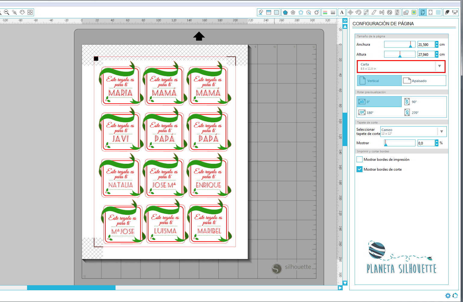 En cuanto a los ajustes de corte, no recordaba cual de todos los que vienen en los predefinidos corresponde al papel imprimible plateado. Y es que algunos, están fatal traducidos.
