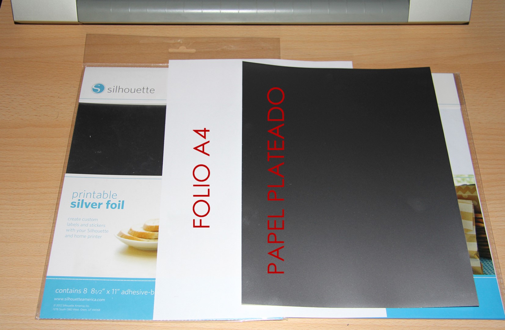 Lo primero que quiero que veáis, es que el tamaño de estas hojas no es de A4, si no tamaño carta, así que es un detalle muy importante a tener en cuenta a la hora de configurar nuestro documento en Silhouette Studio (en la imagen podéis ver la hoja plateada y al lado un folio tamaño A4).