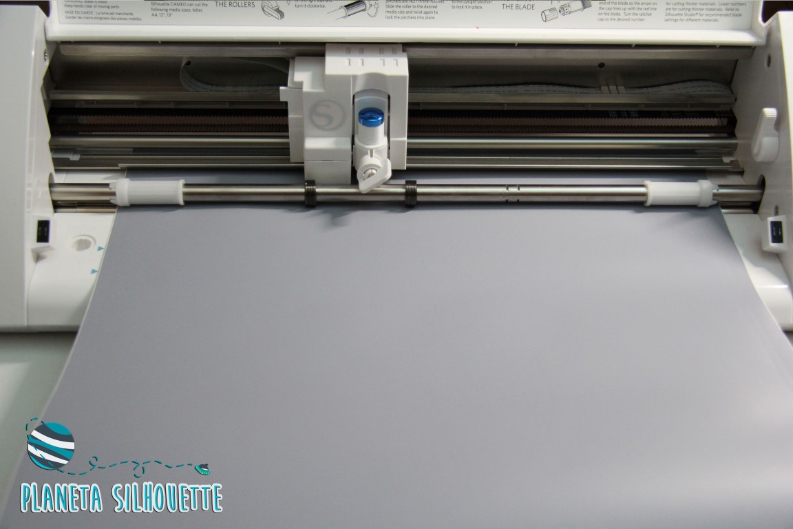 El diseño grande, como es más largo que el tapete, lo he cortado directamente desde el rollo de vinilo. Os recuerdo que esto podéis hacerlo en Cameo y Portrait, pero no Curio.